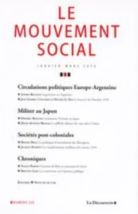 Varia No 230, 2010/1 - pagesPages 3 to 6The Argentine 20th Century. The Recent Historiography on the Nation and NationalismBy Olivier CompagnonPages 7 to 26Depopulation, Fascism, and “Latin” Eugenics in Argentina in the 1930sBy Andrés H. ReggianiPages 27 to 46To Boycott or Not to Boycott. The 1978 FIFA World Cup in Argentina between Politicization and DepoliticizationBy Jean-Gabriel Contamin, Olivier Le NoéPages 47 to 64The Vietnam War Generation in Japan: Academic TrajectoriesBy Frédéric RoustanPages 65 to 78An Analysis of Constraints and Conditions in the Emergence of a Social Movement of At-Risk Persons: The Case of Collective Action among Homeless People in JapanBy David Antoine MalinasPages 79 to 98The Quest of Equality in the French West Indies: Strikes and the Transition to Departmental Status during the 1950sBy Jacques DumontPages 99 to 125The (Non)-Assimilation of the Aborigines in New South WalesBy Bastien BosaPages 127 to 143The Territory of Images: Practices of Cinema and Workers’ Struggles in Sein-Saint-Denis (1968–1982)By Tangui PerronPages 145 to 150How Is a Good Story Written? Concerning Public OpinionBy Brigitte GaïtiPages 151 to 177ReviewsPages 179 to 184Information and Initiatives