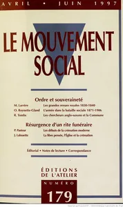 Varia n°179, 1997/2 - pagesPages 3 à 8Ordre et souverainetéPar Danielle TartakowskyPages 9 à 32Ainsi paradait le roi des barricades. Les grandes revues de la garde nationale, à Paris, sous la Monarchie de JuilletPar Mathilde LarrèrePages 33 à 58L'armée dans la bataille sociale: maintien de l'ordre et grèves ouvrières dans le Nord de la France (1871-1906)Par Odile Roynette-GlandPages 59 à 80Les débuts de la crémation moderne en FrancePar Paul PasteurPages 81 à 92La Libre Pensée, l'Eglise et la crémationPar Jacqueline LalouettePages 93 à 104Les Communeux dans la ville: des analyses récentes à l'étrangerPar Robert TombsPages 105 à 105CorrespondancePar Alain RouxPages 106 à 143Notes de lecture